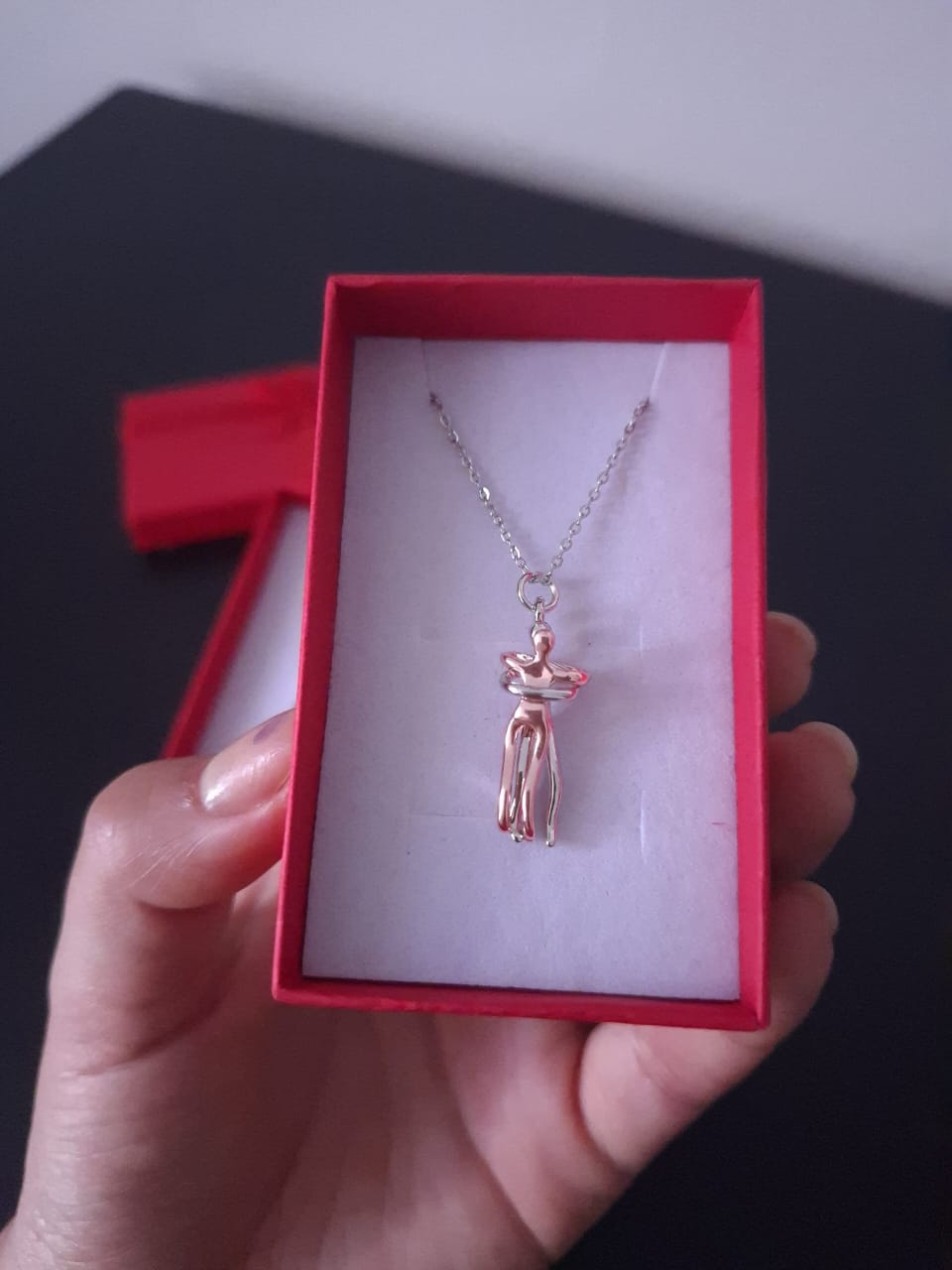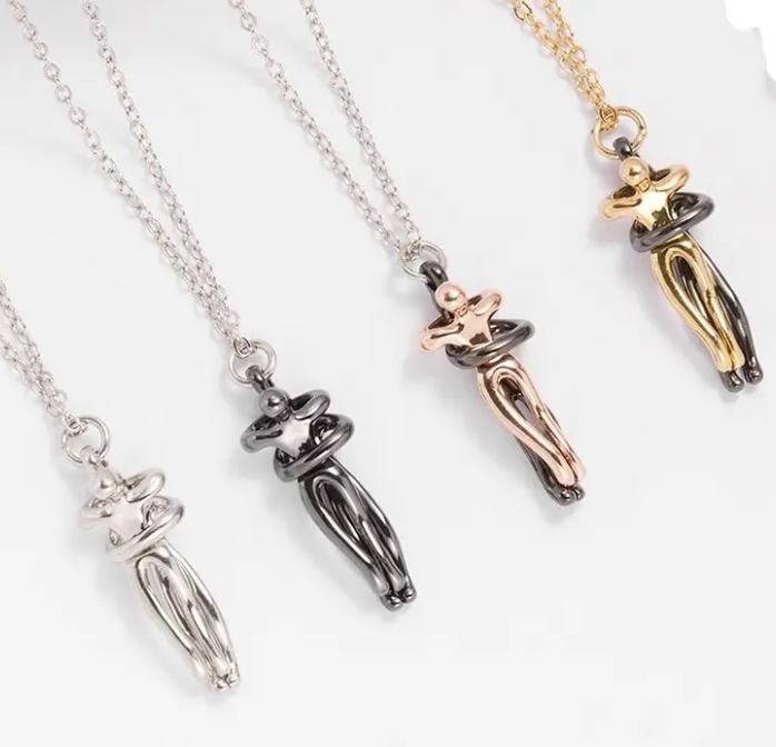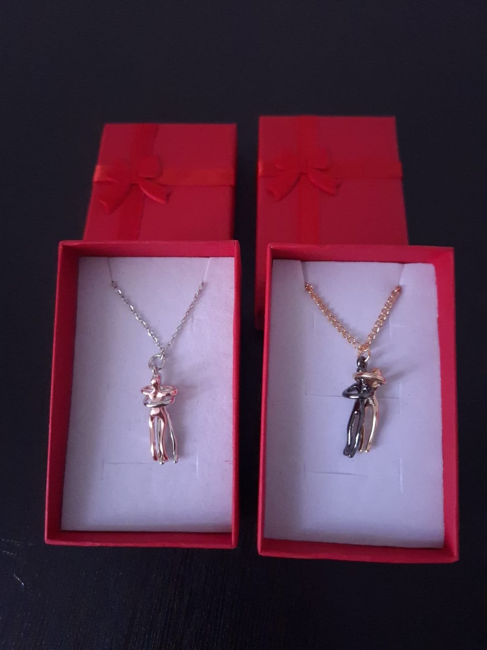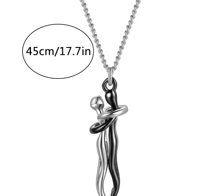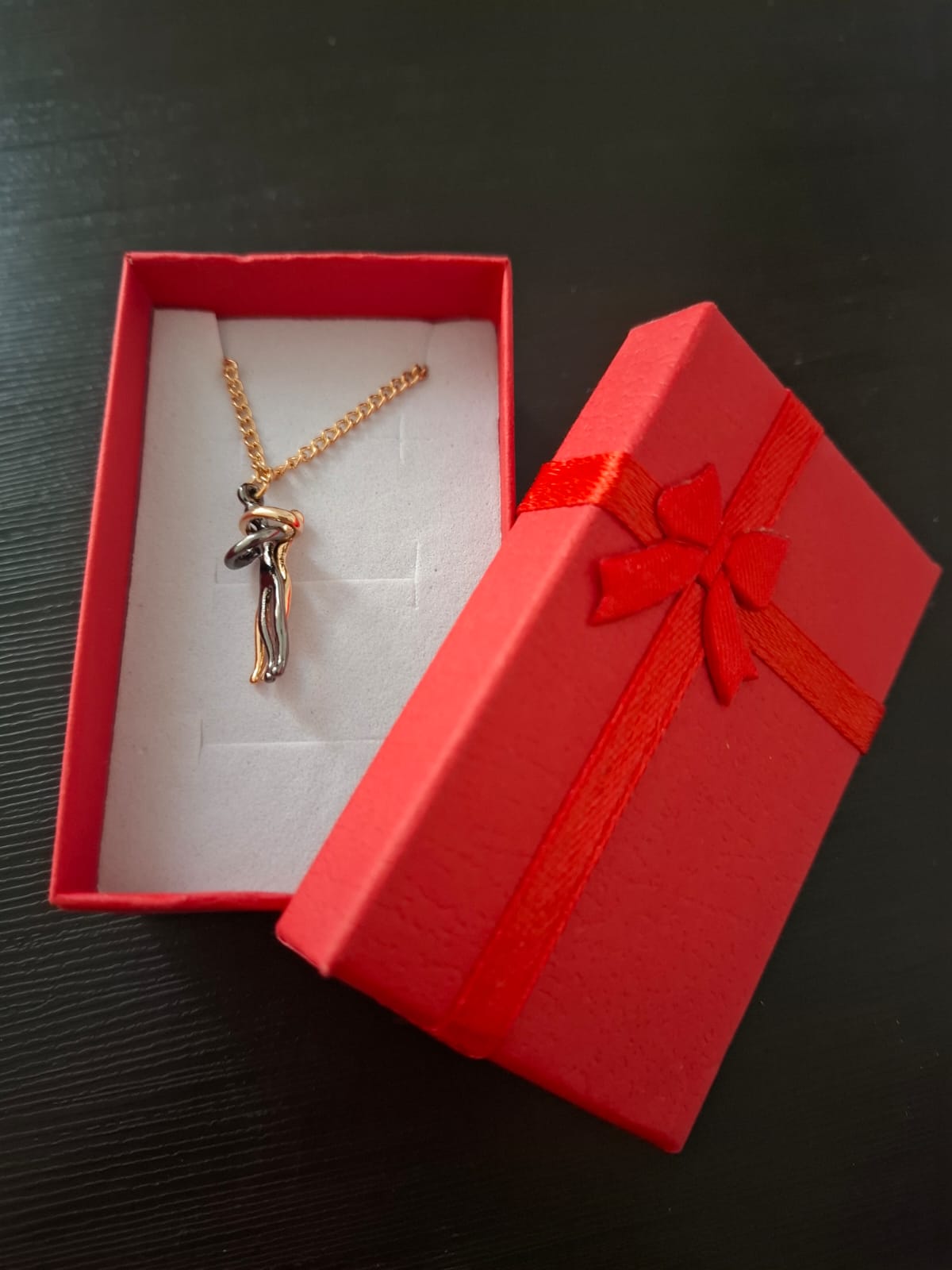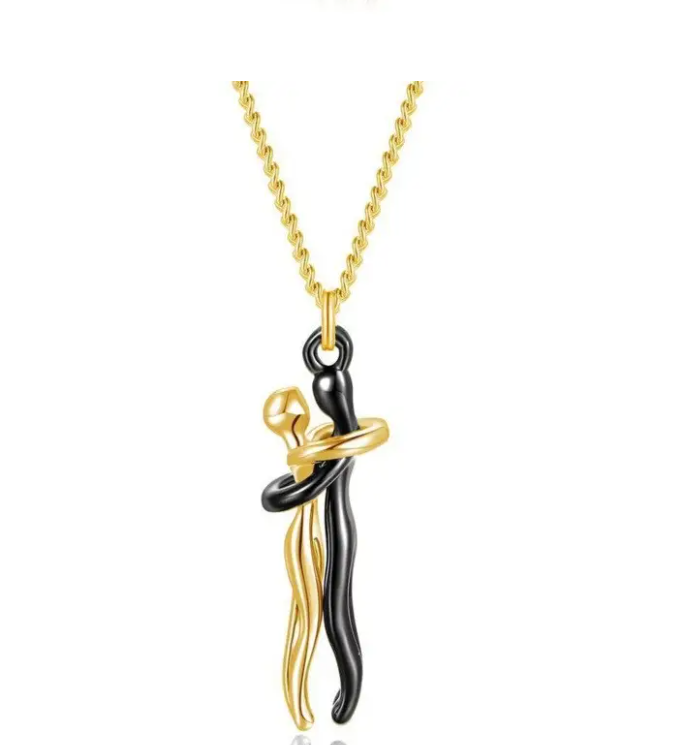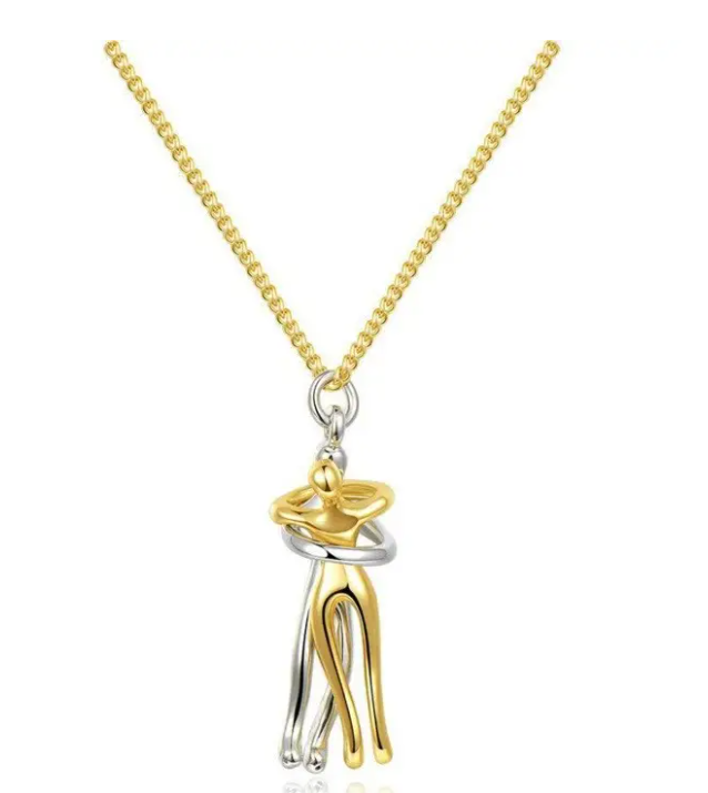 Te presentamos el Collar Abrazo Eterno, la joya diseñada para ser un recordatorio constante de que nunca caminas solo. Su diseño único, con dos figuras estilizadas que se funden en un abrazo, es un poderoso manifiesto visual: simboliza la unión, el apoyo mutuo y la protección que persiste a pesar de la distancia o el tiempo.
