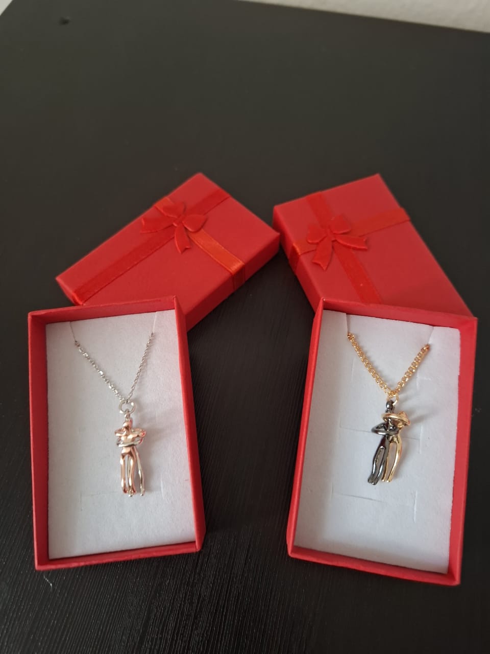 Cada figura mide 1.8 cm de largo, perfectamente proporcionada para ser discreta pero notable. La cadena de 50 cm, con una extensión adicional de 10 cm, garantiza un ajuste cómodo para cualquier persona y en cualquier ocasión. Su peso total (solo 20 gramos) es ligero y confortable.